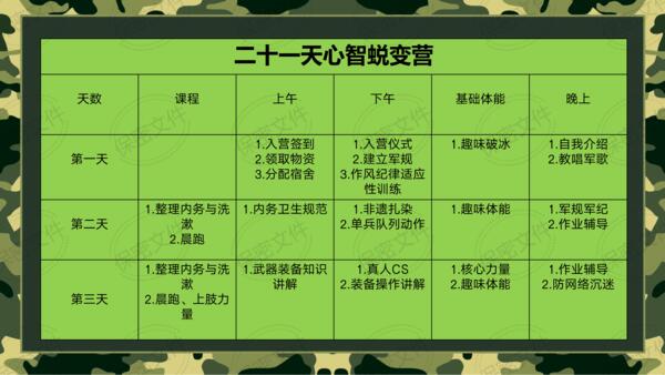 核心理念:通过标准化、规范化的军事训练,塑造军人气质,培养铁律意识,增强爱国意识,体验团队配合的极致乐趣