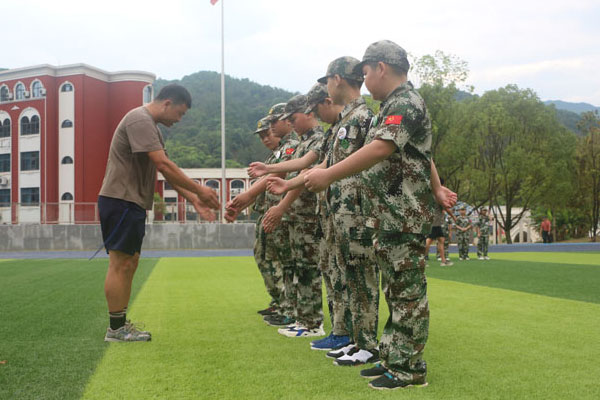 参照部队建制,依照营员年龄分班,进行封闭式、军事化管理,开展队形、队列、军体拳、枪械常识、国防形势教育活动,突出以军人为榜样,作风纪律培养、意志品质磨练和行为习惯养成,课程设置以军营文化与校园文化相结合,“军、教、游、学”相渗透,全方面培养和训练学员的综合素质。生活习惯抓养成,拓展训练创思维,应急自救学保护,野外生存练能力,游学参观明心境,国防教育立远志。